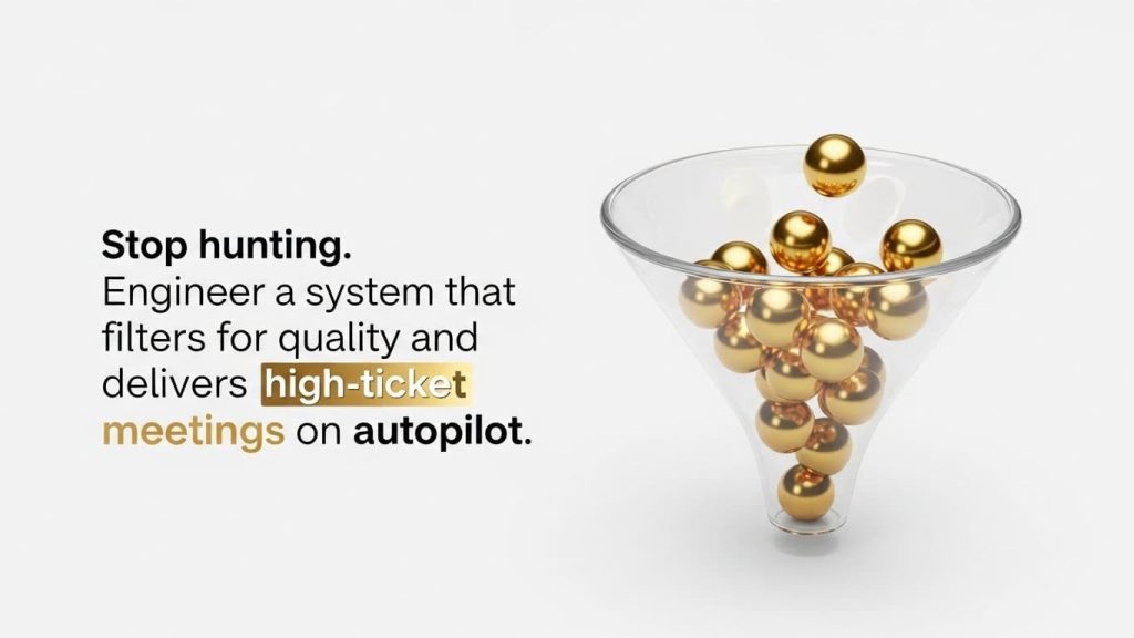 Your pipeline should be a “black box” where cold traffic goes in and qualified meetings come out. This isn’t just about volume; it’s about the velocity of your growth. When you stop manual prospecting, you buy back the mental energy needed to solve the big problems for the clients you already have.