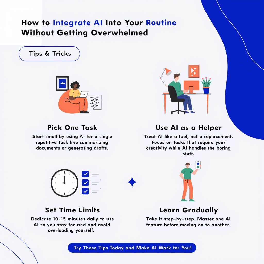 Integrating AI into your routine isn’t a tech race. It’s an act of personal clarity: knowing what slows you down, choosing a simple ally, and letting it handle the grunt work.